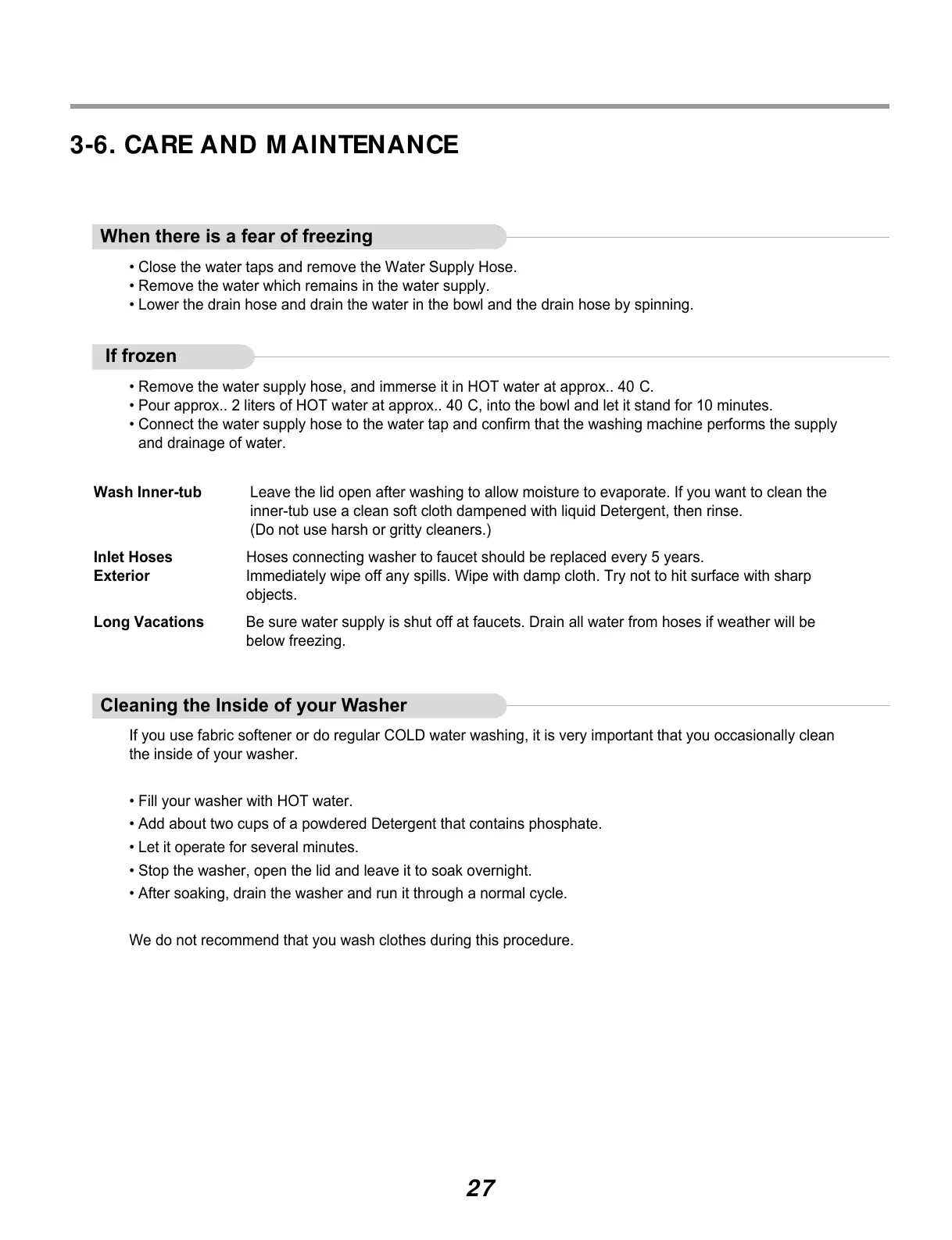 inner-tub use a clean soft cloth dampened with liquid Detergent, then rinse.
