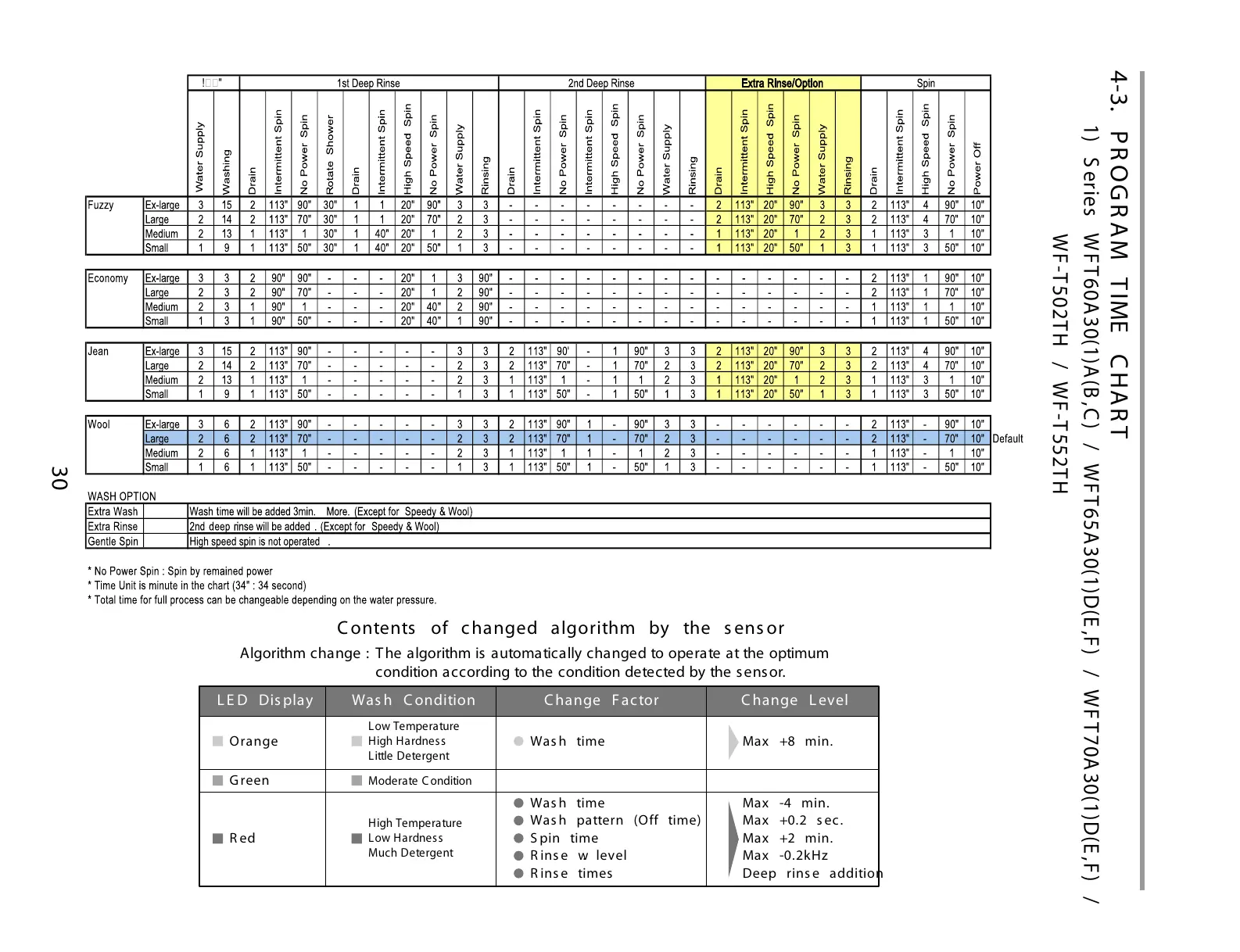 LG WFT60A30D - Program Time Chart