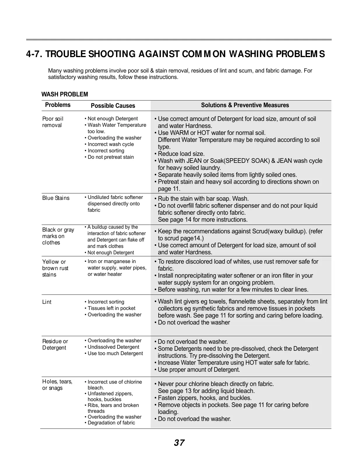4-7. TROUBLE SHOOTING AGAINST COM M ON WASHING PROBLEM S