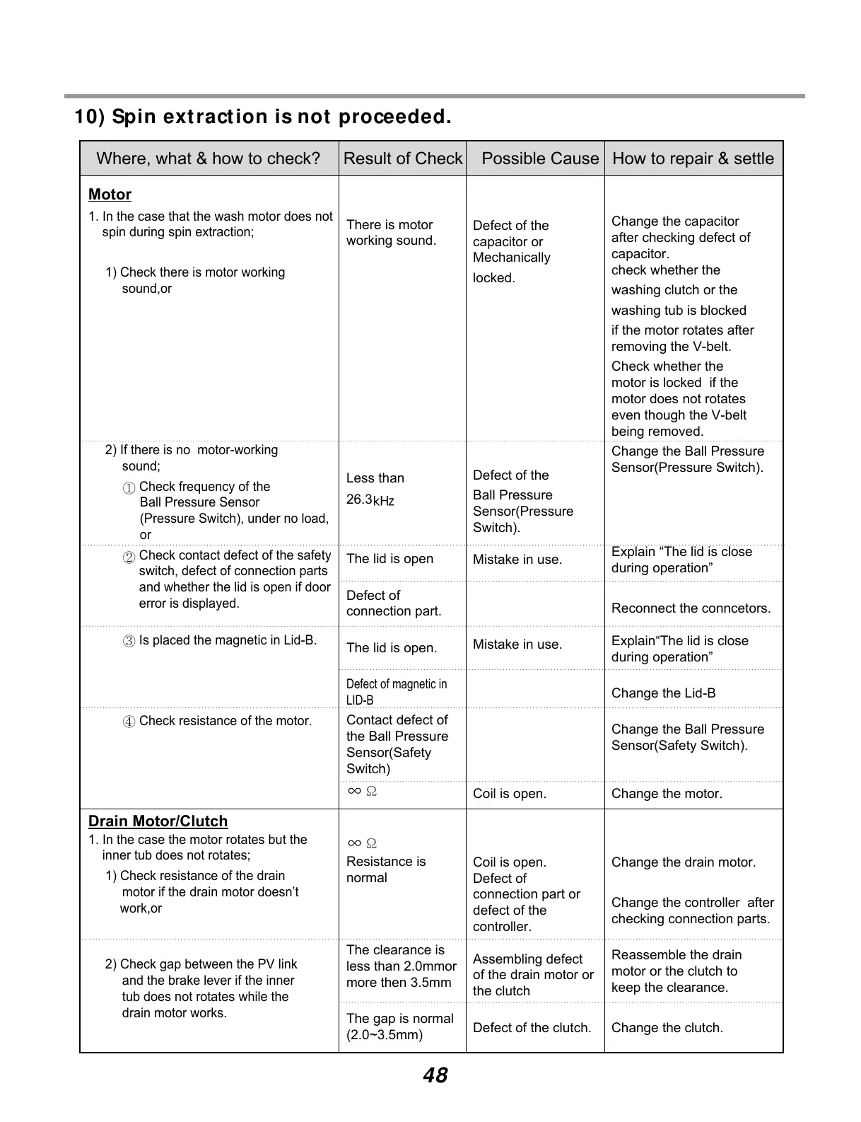 1. In the case that the wash motor does not