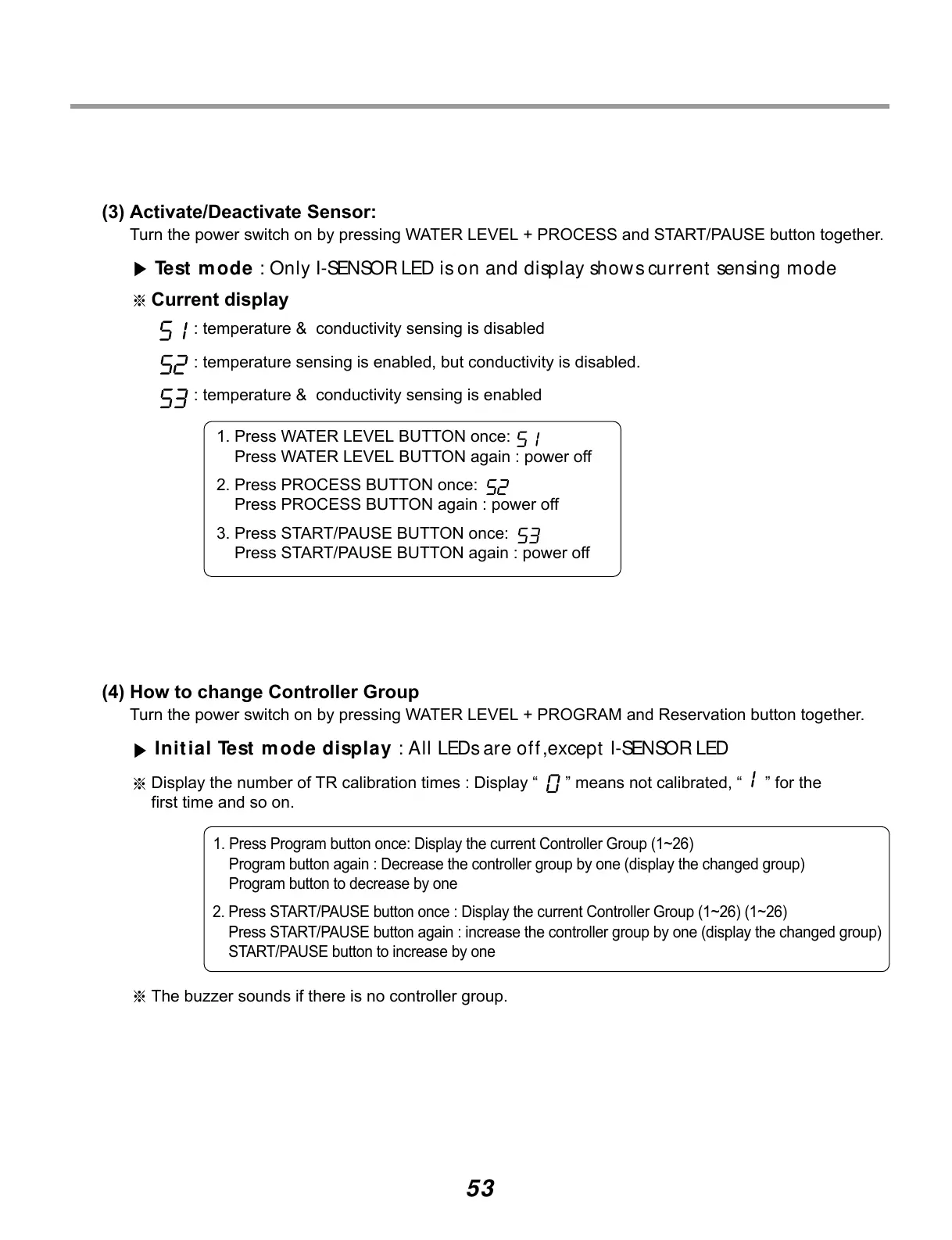 Test mode : Only I-SENSOR LED is on and display shows current sensing mode
