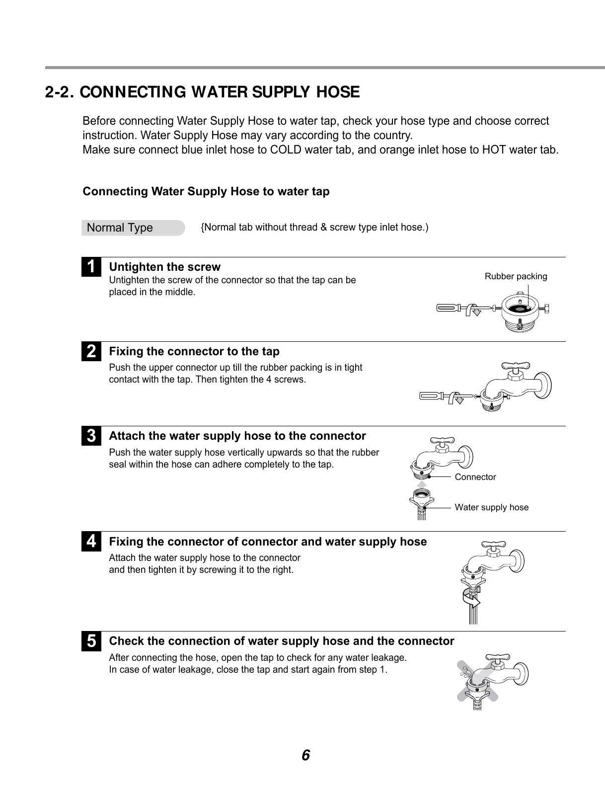 2-2. CONNECTING WATER SUPPLY HOSE