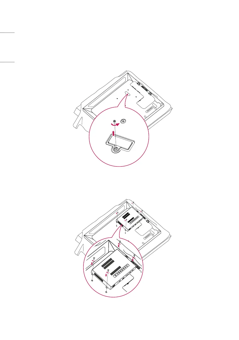 2 Align the WP401/WP402 along the four screw holes on the rear of the set and attach it to the rear of the set