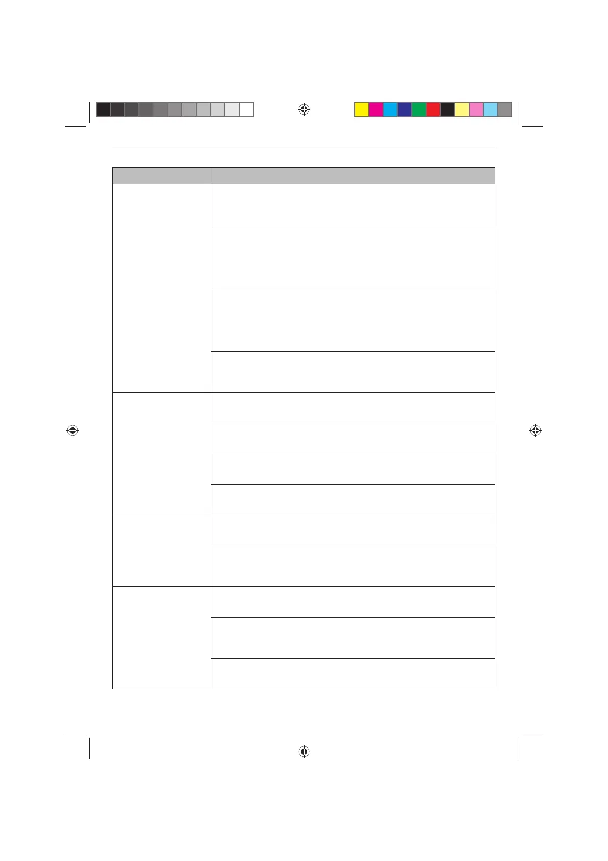 Symptoms Possible Cause & Solution