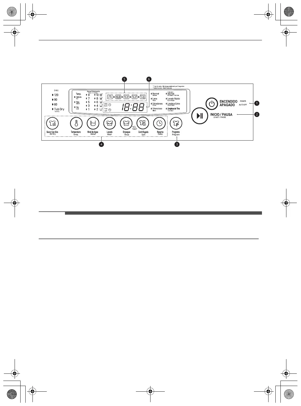 estado. Cuando se enciende el electrodoméstico, se iluminará la configuración predeterminada en la