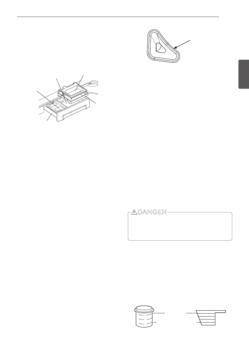 languette et la tasse a detergent liquide du compartiment.