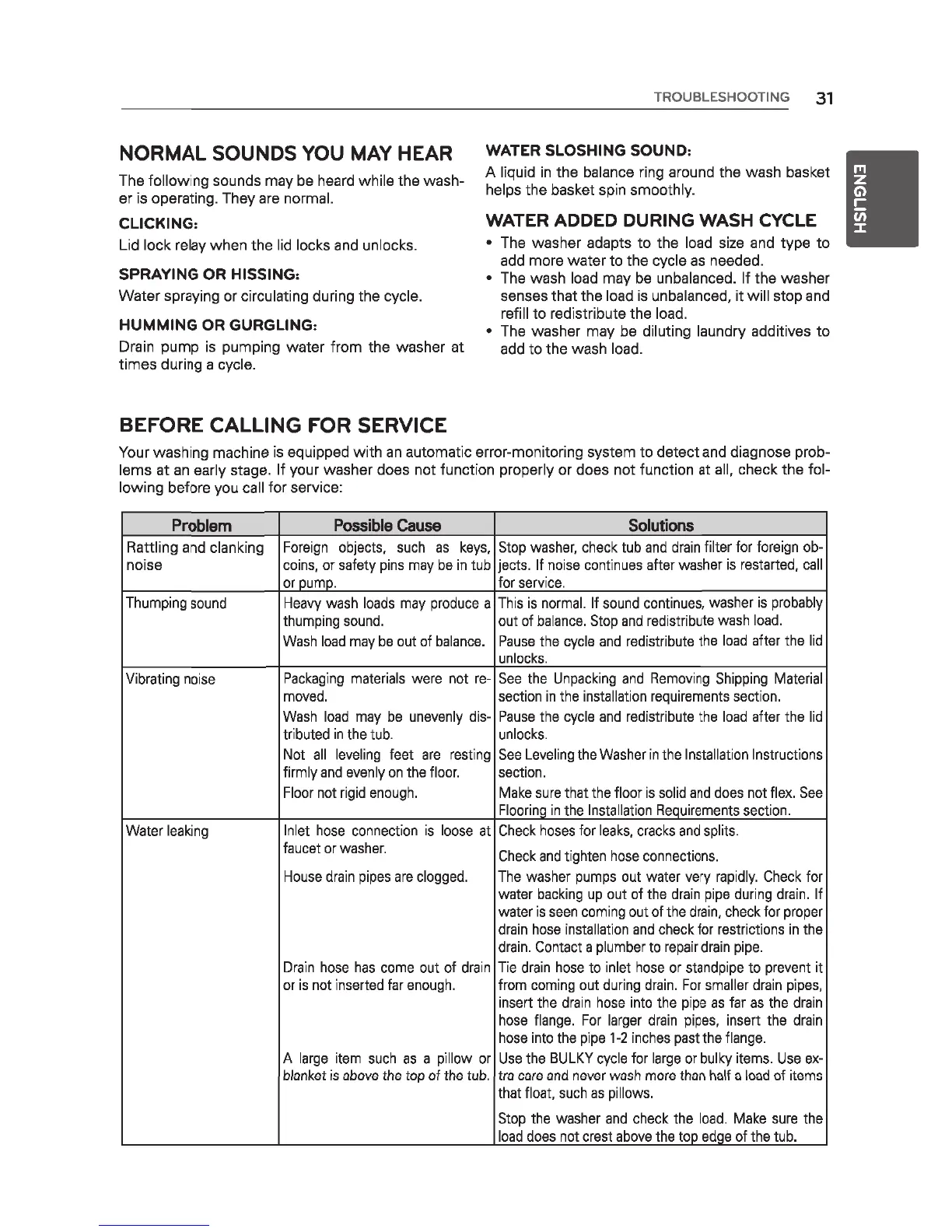 LG WT1701CV - Normal Sounds You May Hear; Before Calling for Service; Water Added During Wash Cycle