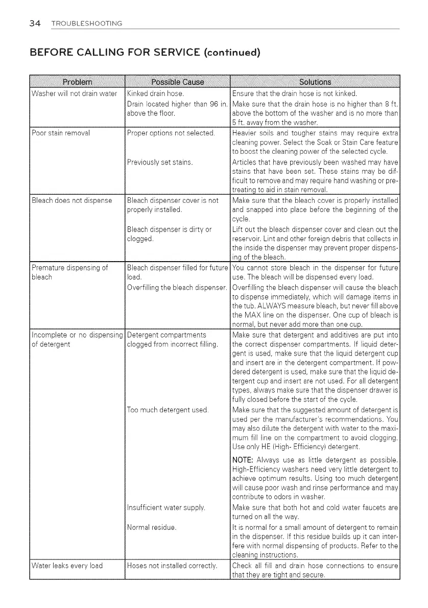 Overfilling the bleach dispenser will cause the bleach