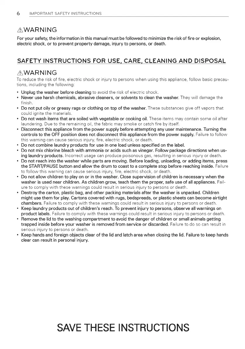 • Keep laundry products out of children's reach. To prevent injury to persons, observe all warnings on