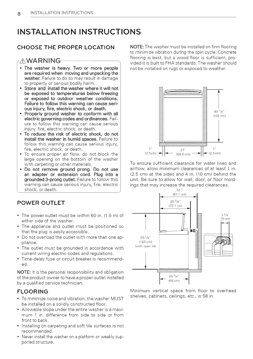 (2.5 cm) at the sides and 4 in. (10 cm) behind the
