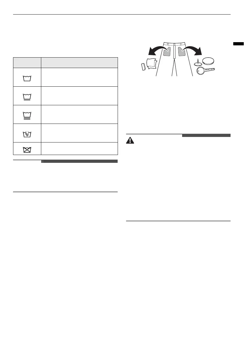 • Do not wash or spin any item labelled or known