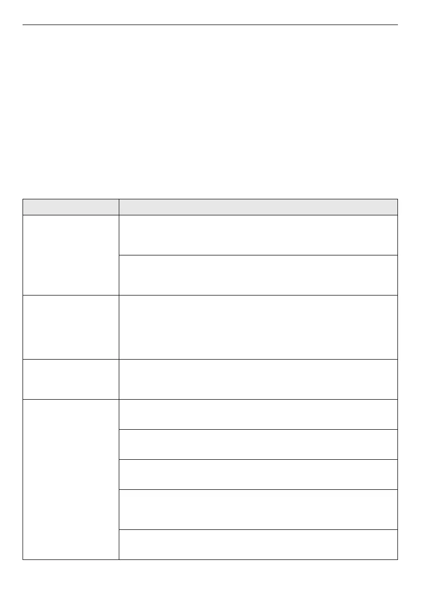 Operation of the appliance can lead to errors and malfunctions. The following tables contain possible