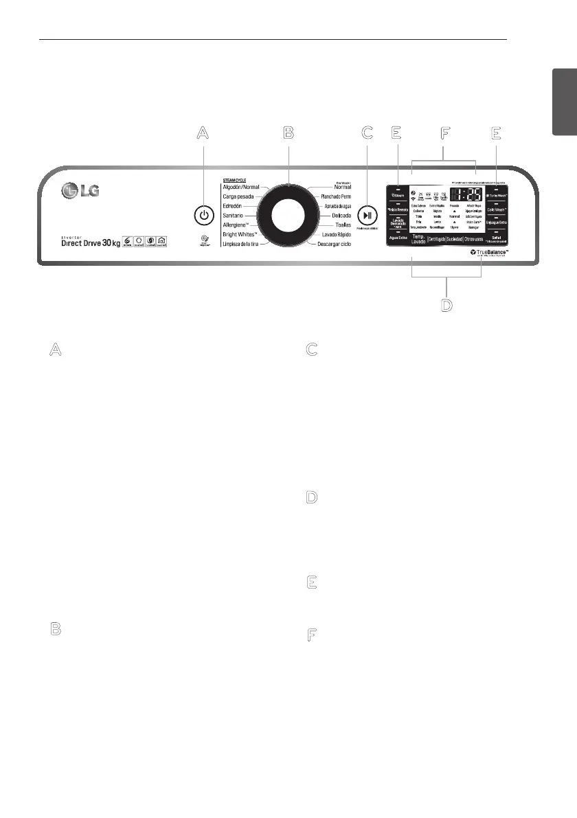 Press to turn the washer ON. Press again to