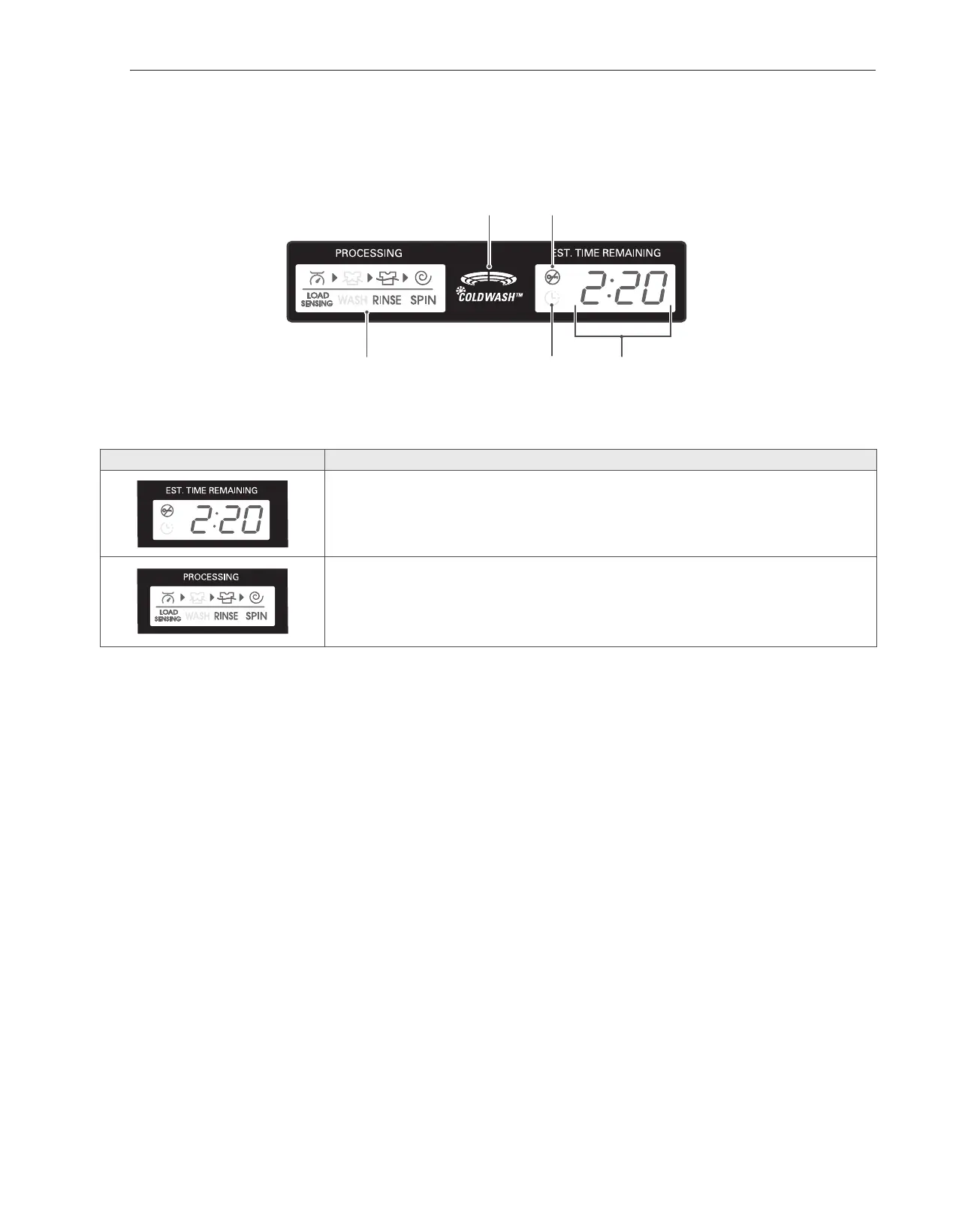 La pantalla indicará entonces el tiempo restante estimado para el ciclo de lavado seleccionado.