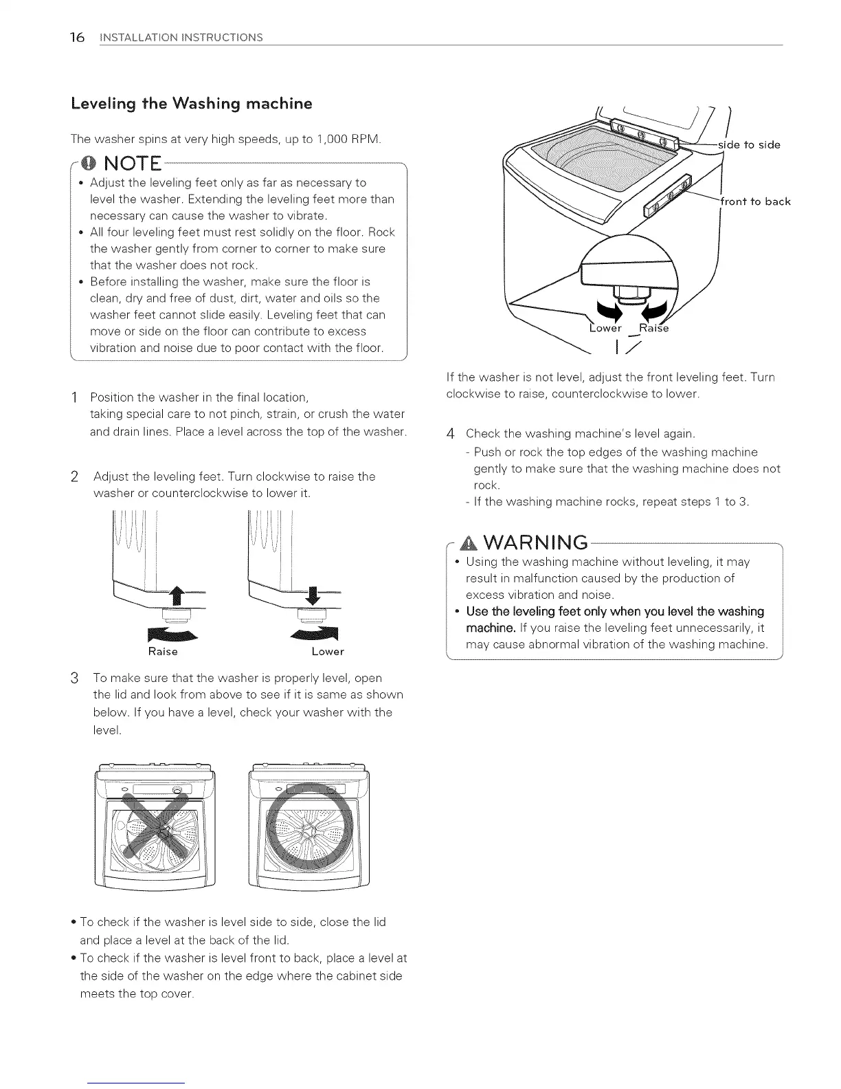 below. If you have a level, check your washer with the