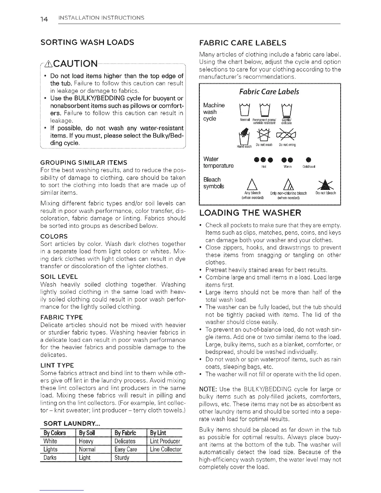 NOTE: Use the BULKY/BEDDING cycle for large or