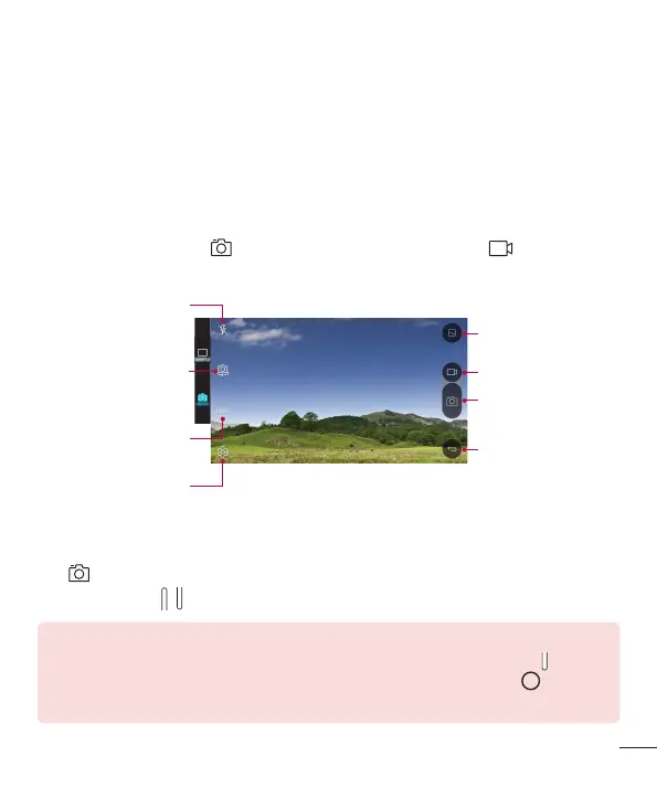 2 写真撮影の場合、 をタップする。動画撮影の場合、 をタップする