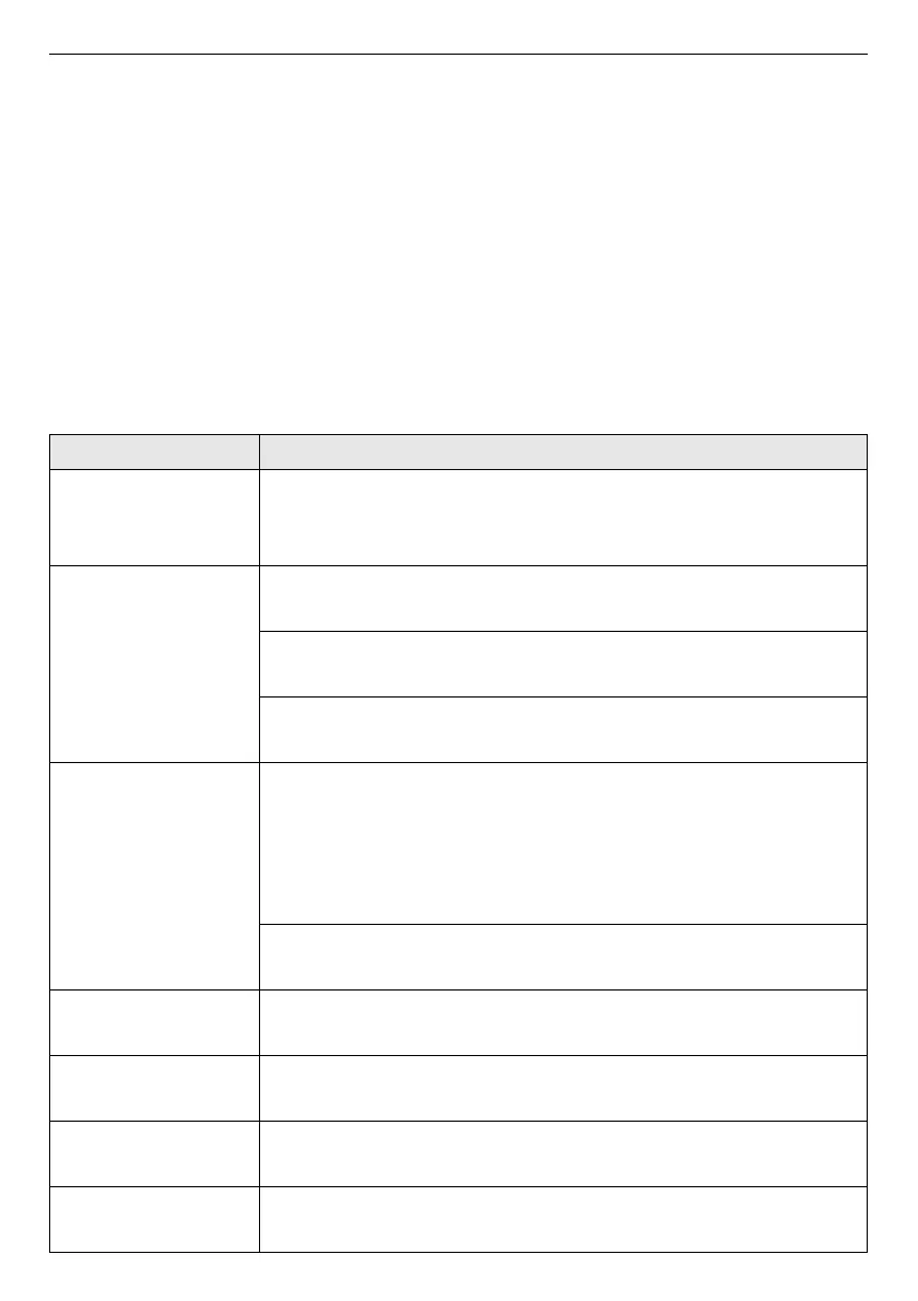 Operation of the appliance can lead to errors and malfunctions. The following tables contain possible