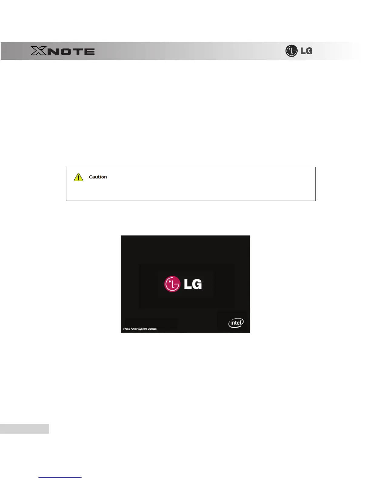 key while the "Press F2 for System Utilities" appears on the bottom of the LG logo screen.