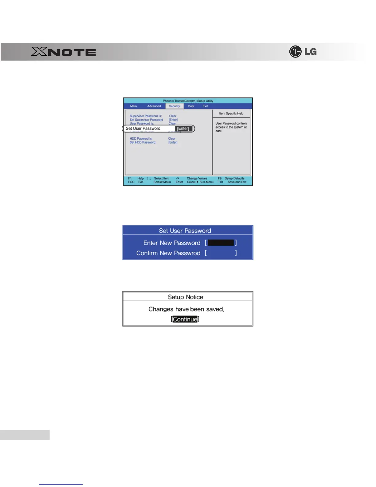 When the following screen appears, select Set User Password with the arrow keys and press [Enter].
