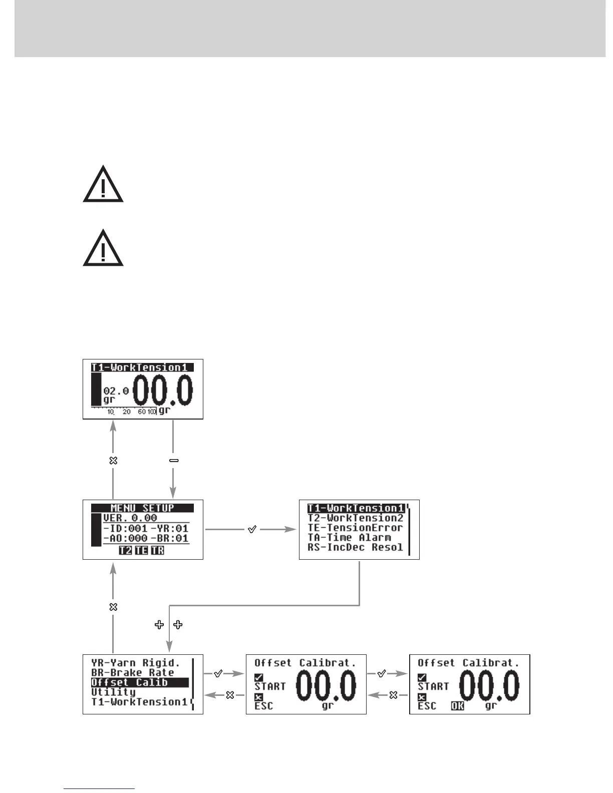 WARNING: during the OFFSET calibration, the yarn shall never