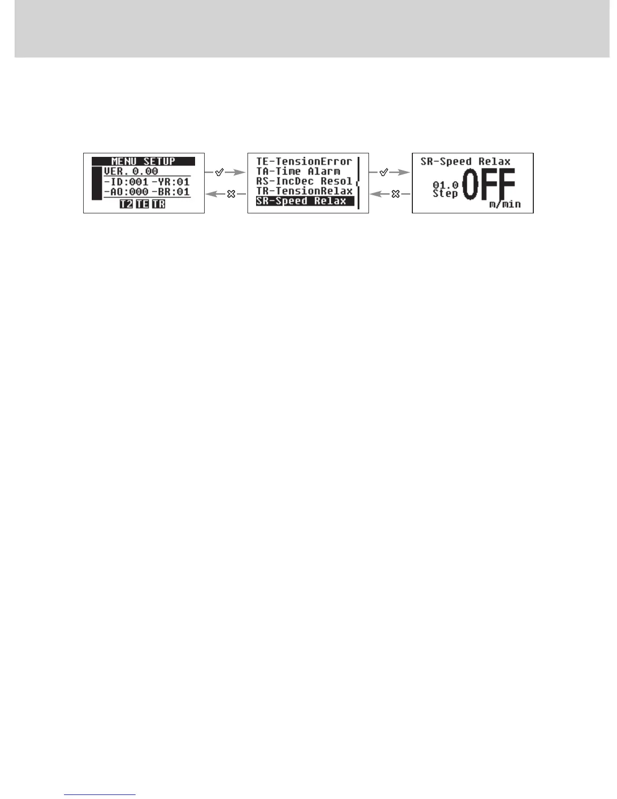 − Values ranging from 3 to 999 m/min to actuate “Tension Relax” at a speed