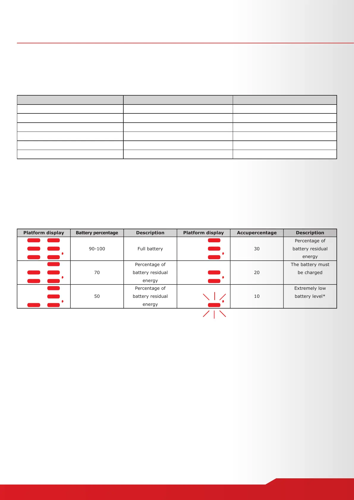 of a percentage: 10, 20, 30, 50, 70 and 90. When there is only 10% battery level left, the display ashes once every