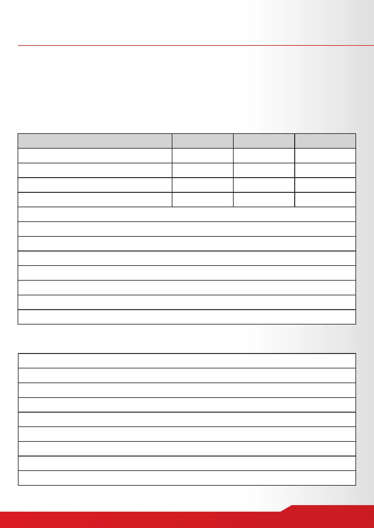 3) Register the results in the table. Fill in each completed item according to the table in the operating manual.