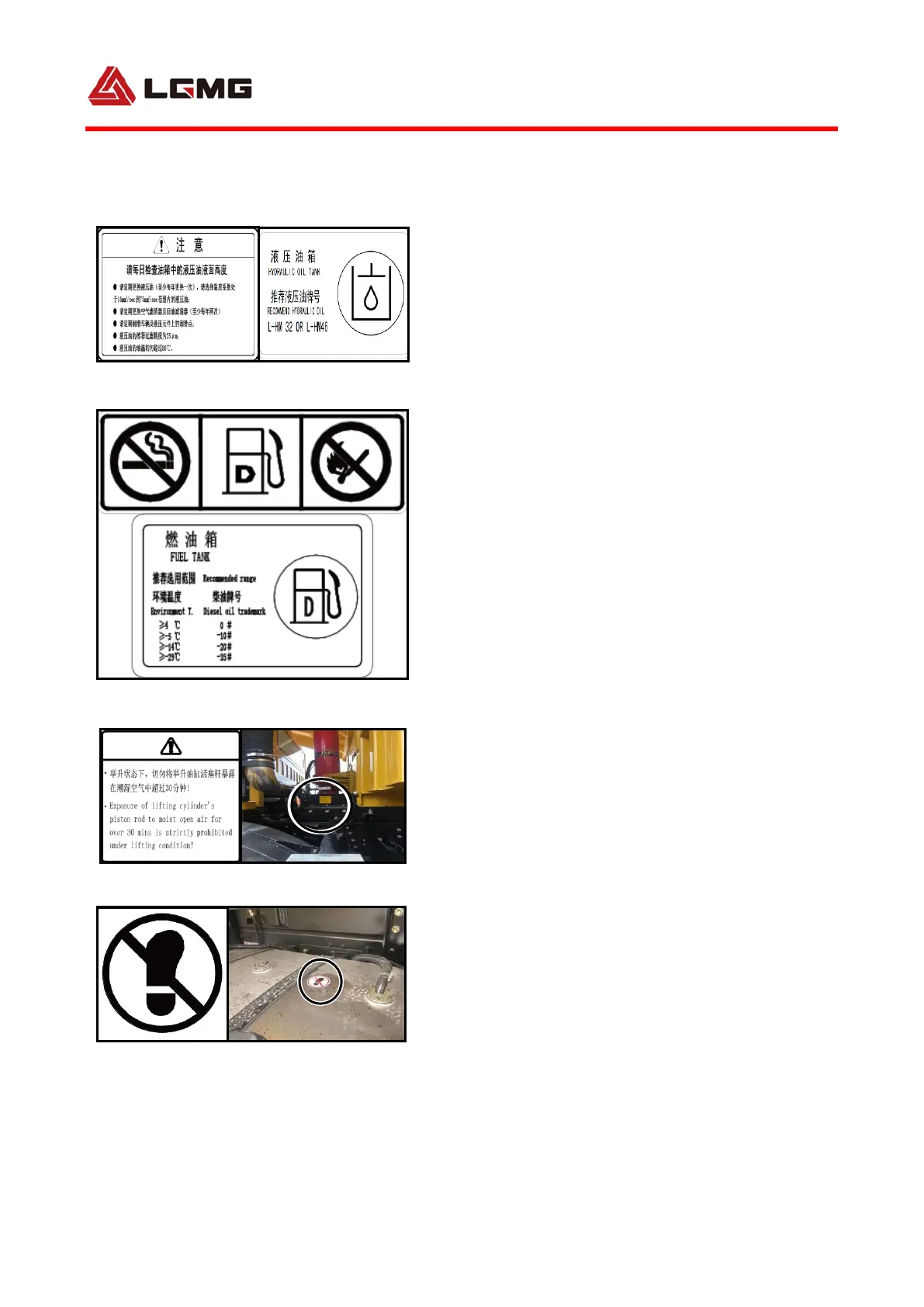 2) Hydraulic oil mark: at hydraulic oil tank.