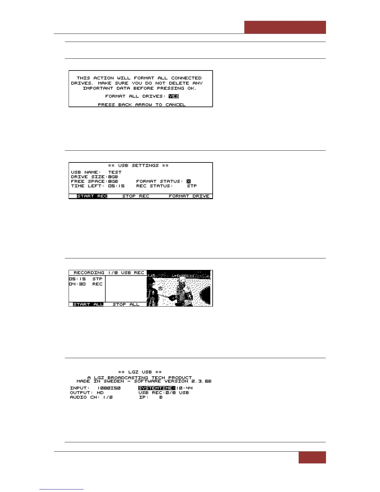 started and stopped on this device. The device can also be formatted. Beware, the FORMAT