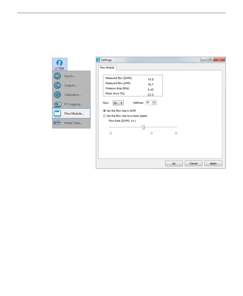 The 7200-101 Flow Module can be operated through the LI-7200/RS Windows soft-