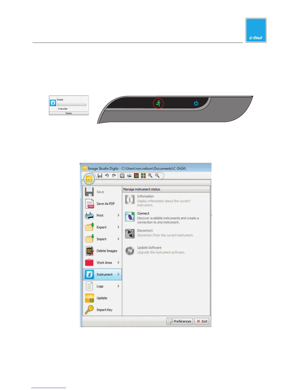 illuminate on the instrument front panel, and the Status panel in the Image