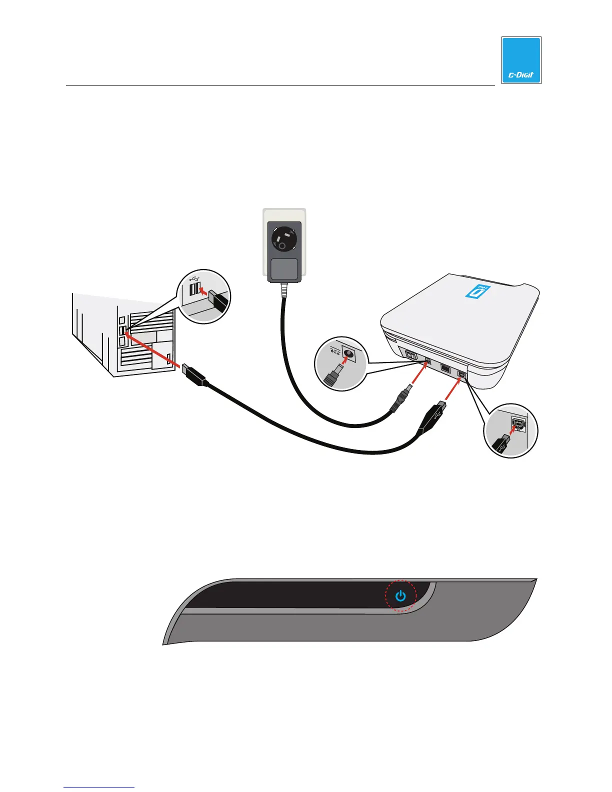 Power C-DiGit Blot Scanner on with the power switch on the back panel. The