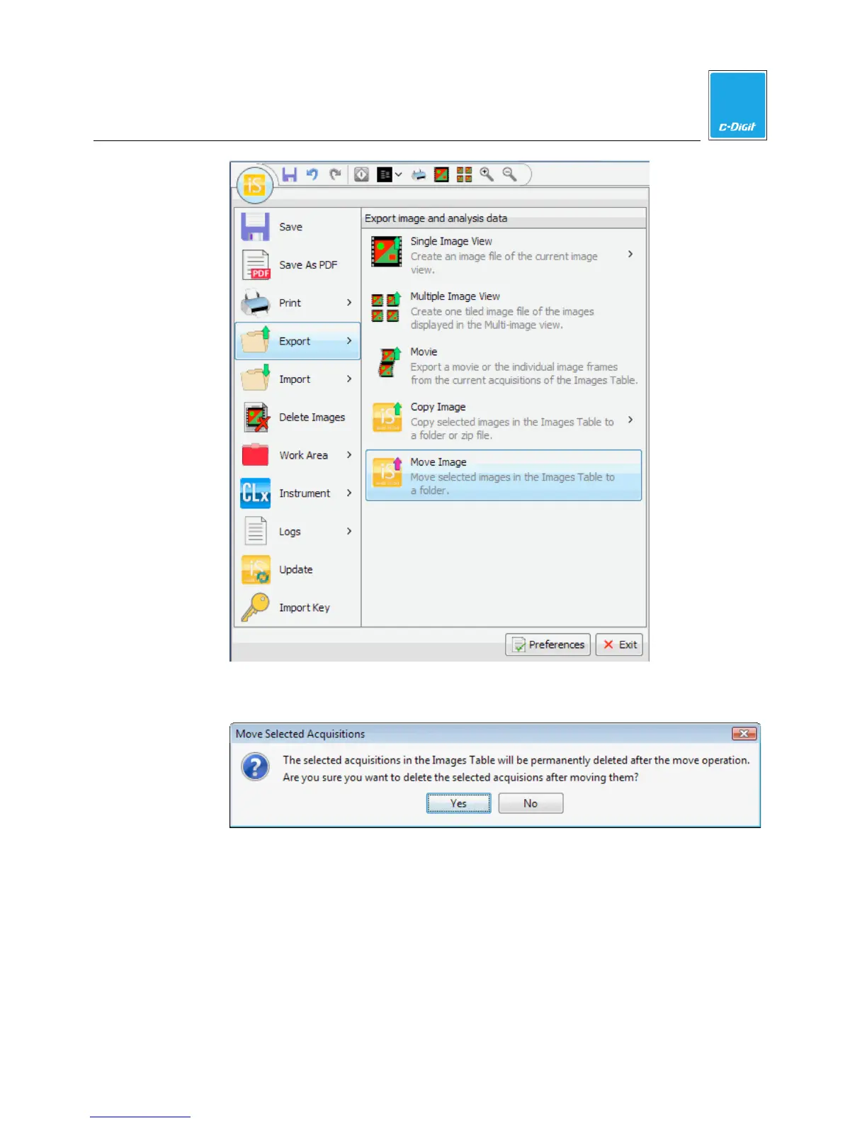 Move Image from the Export menu. The message below is displayed.