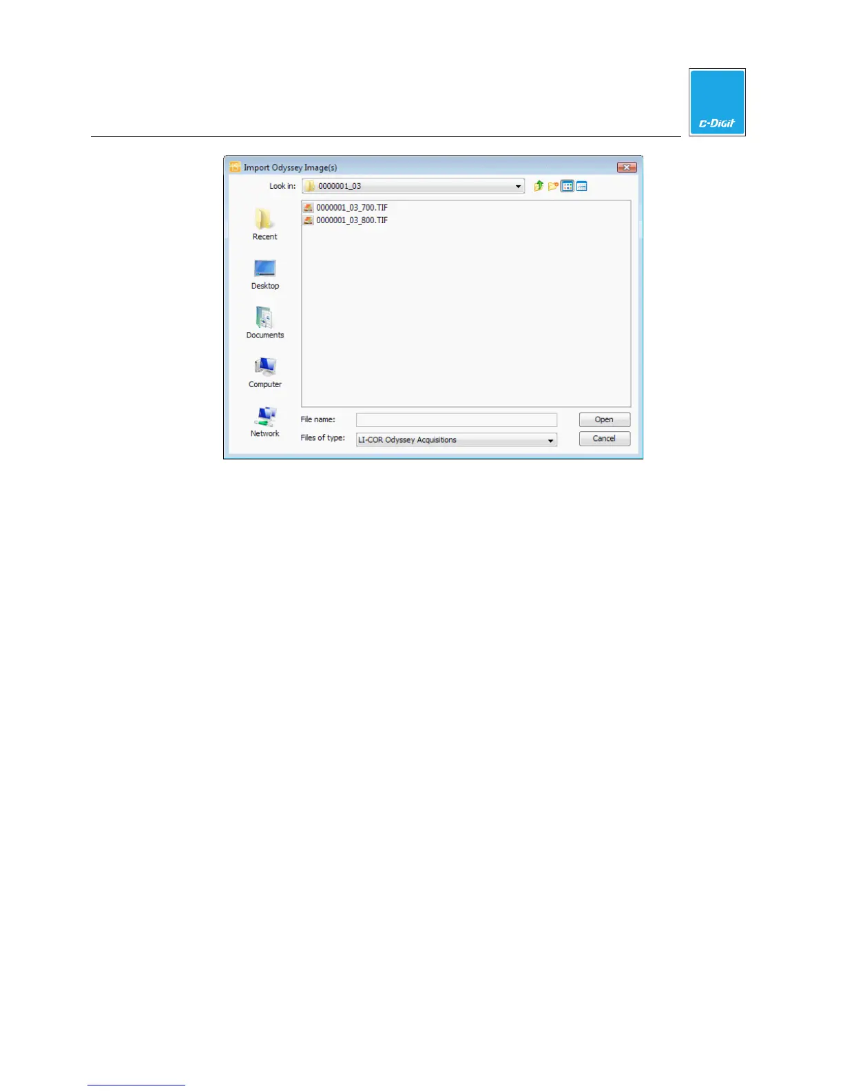 3. Select the image(s) to import and click Open. You can select one or more