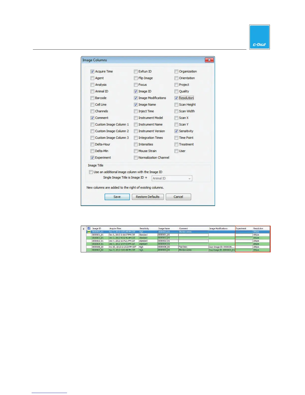 LI-COR C-DiGit - Edit the Image Title