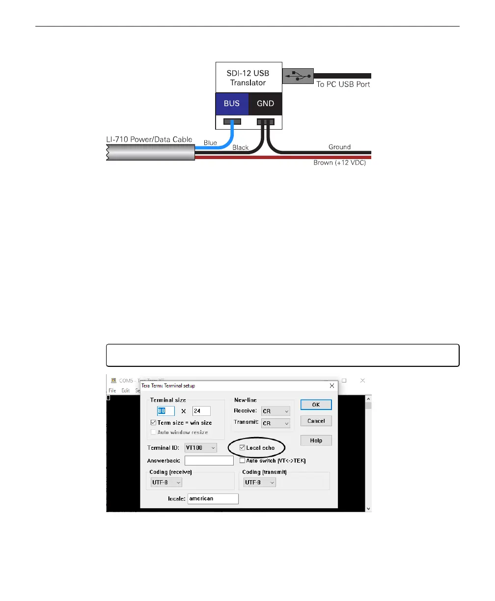 Figure 4-2. When connecting the LI-710 to an SDI-12-to-USB translator, connect the data
