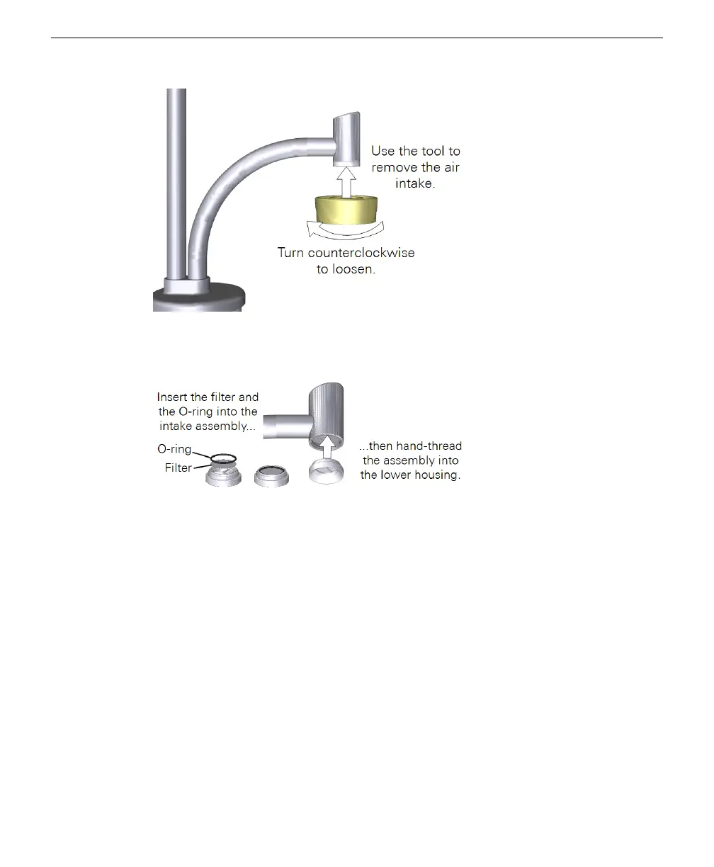 Do not cross-thread the air intake. Start tightening the intake with your fingers. Fin-