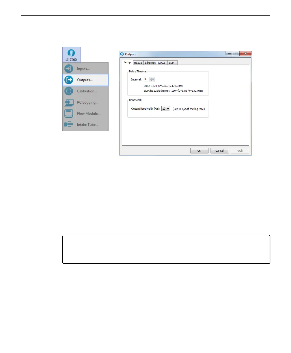 The Setup tab presents Delay Time and Bandwidth settings that affect all outputs