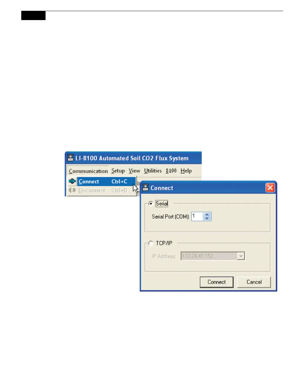 LI-8100A is connected or the IP address of the LI-8100A, if the LI-8100A is