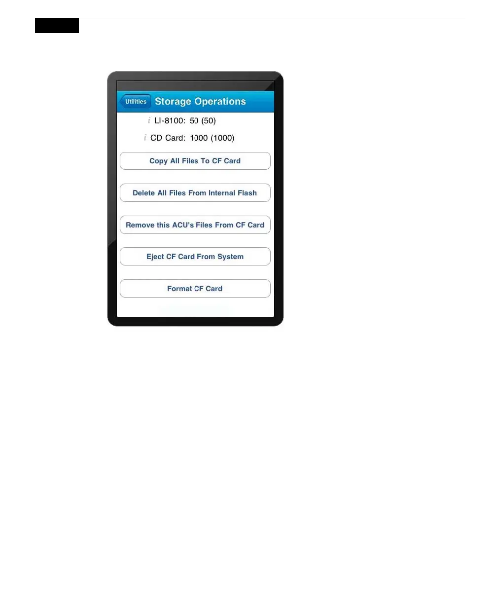 Copy All Files to CF Card: Copies all files from the LI-8100A internal memory to