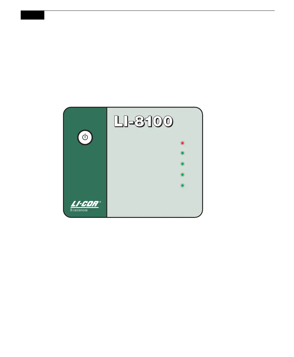 When the LI-8100A is powered on using the ON/OFF button on the indicator panel