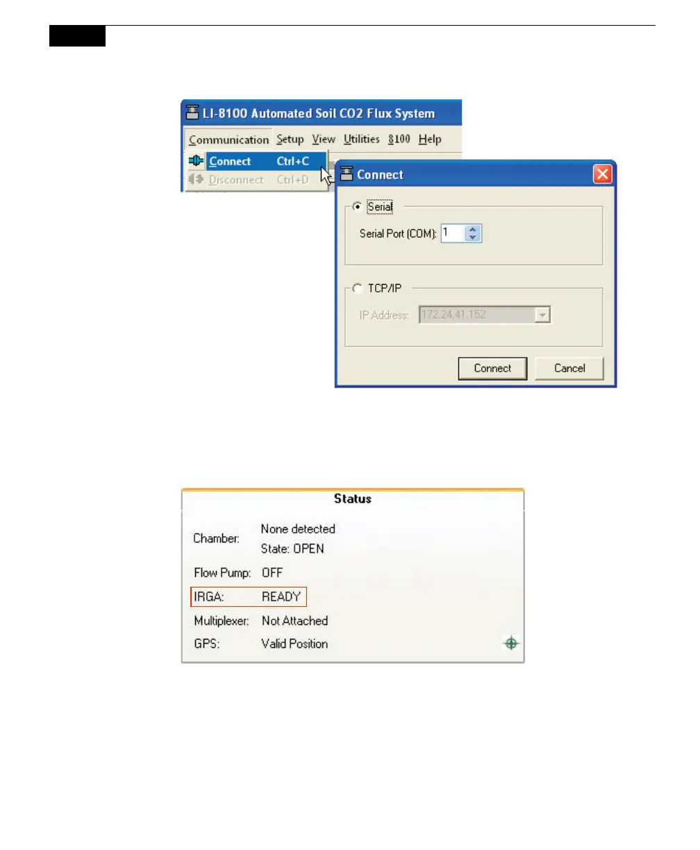 or the LED of the LI-8100A keypad. After about 10 minutes, the IRGA Ready