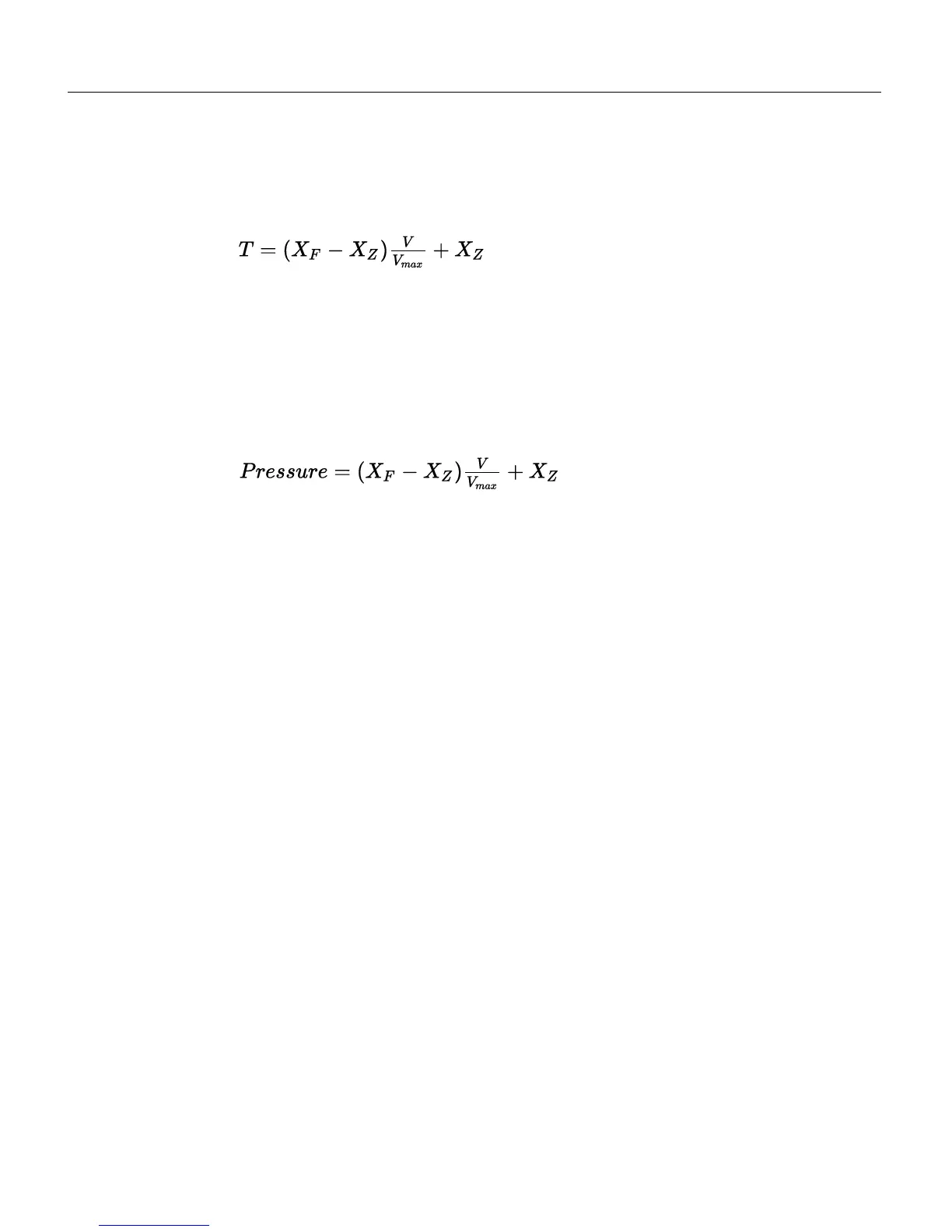 the pressure value that corresponds to the low voltage, V is the voltage reading, and
