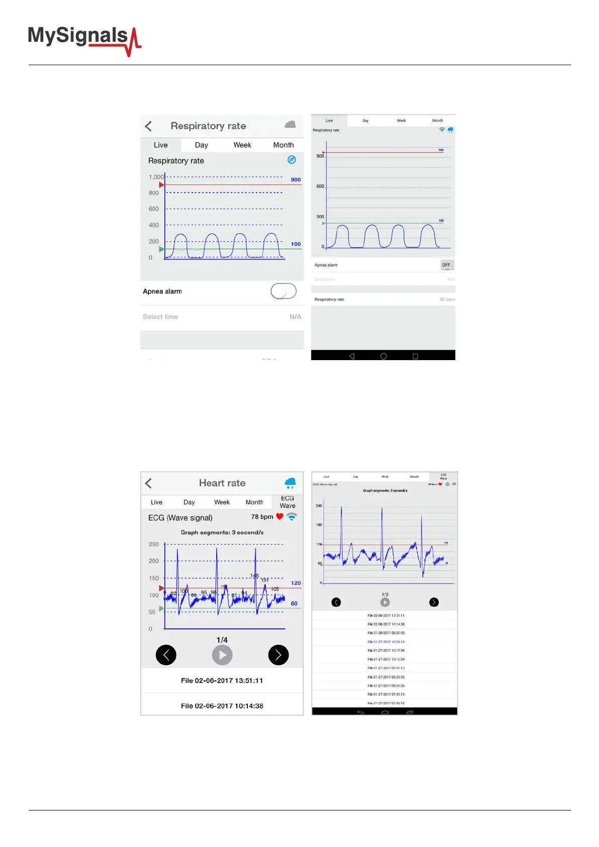 On top right, you can see the ECG rate, EMG rate, Airow rate or Snore rate. Above the graph, you can see the