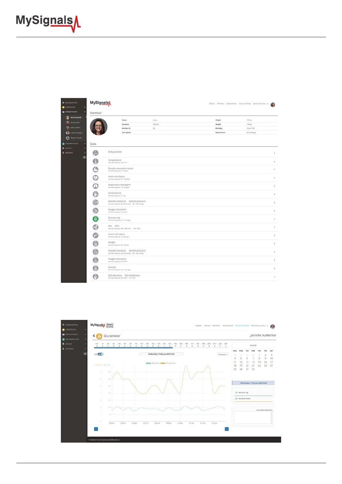 • Green: It is a real- time value measured in MySignals Software