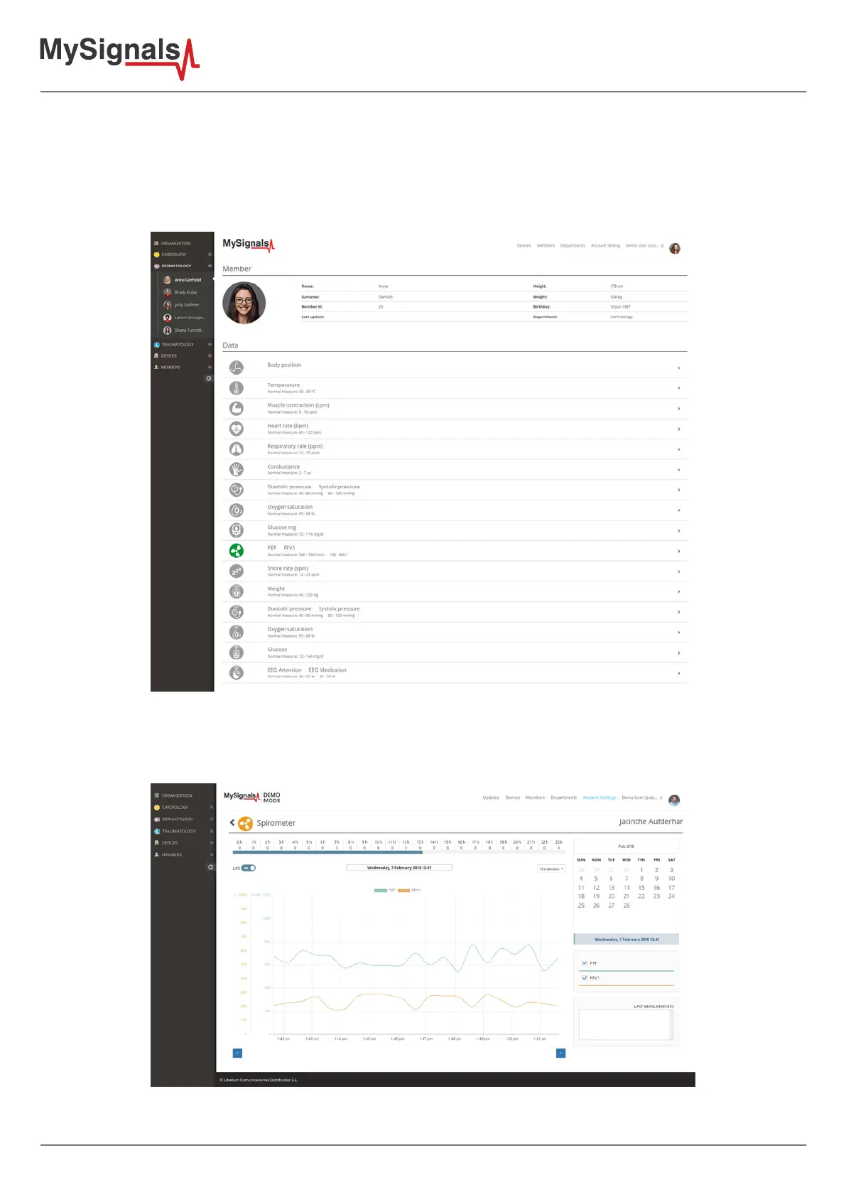 • Green: It is a real- time value measured in MySignals Software