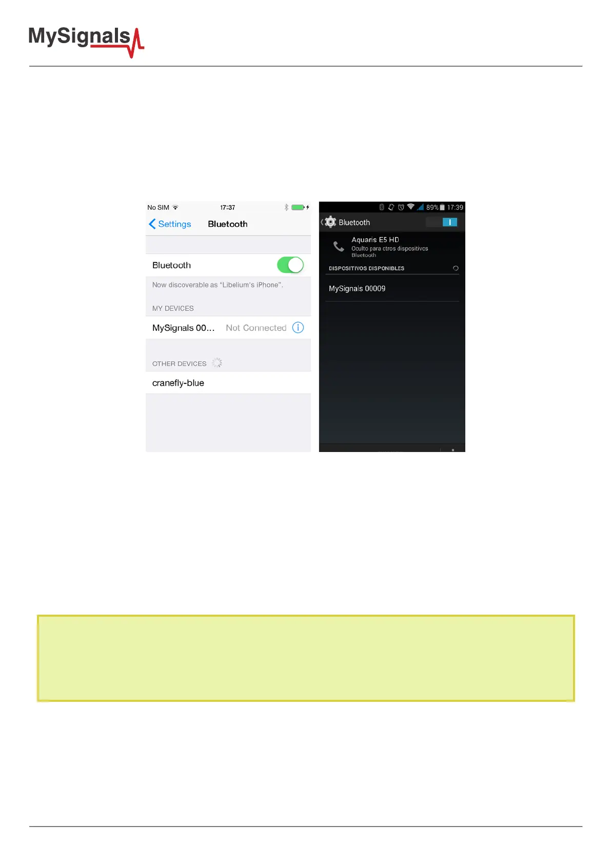Sometimes you will need to congure the connection with MySignals using the Android or iOS settings.