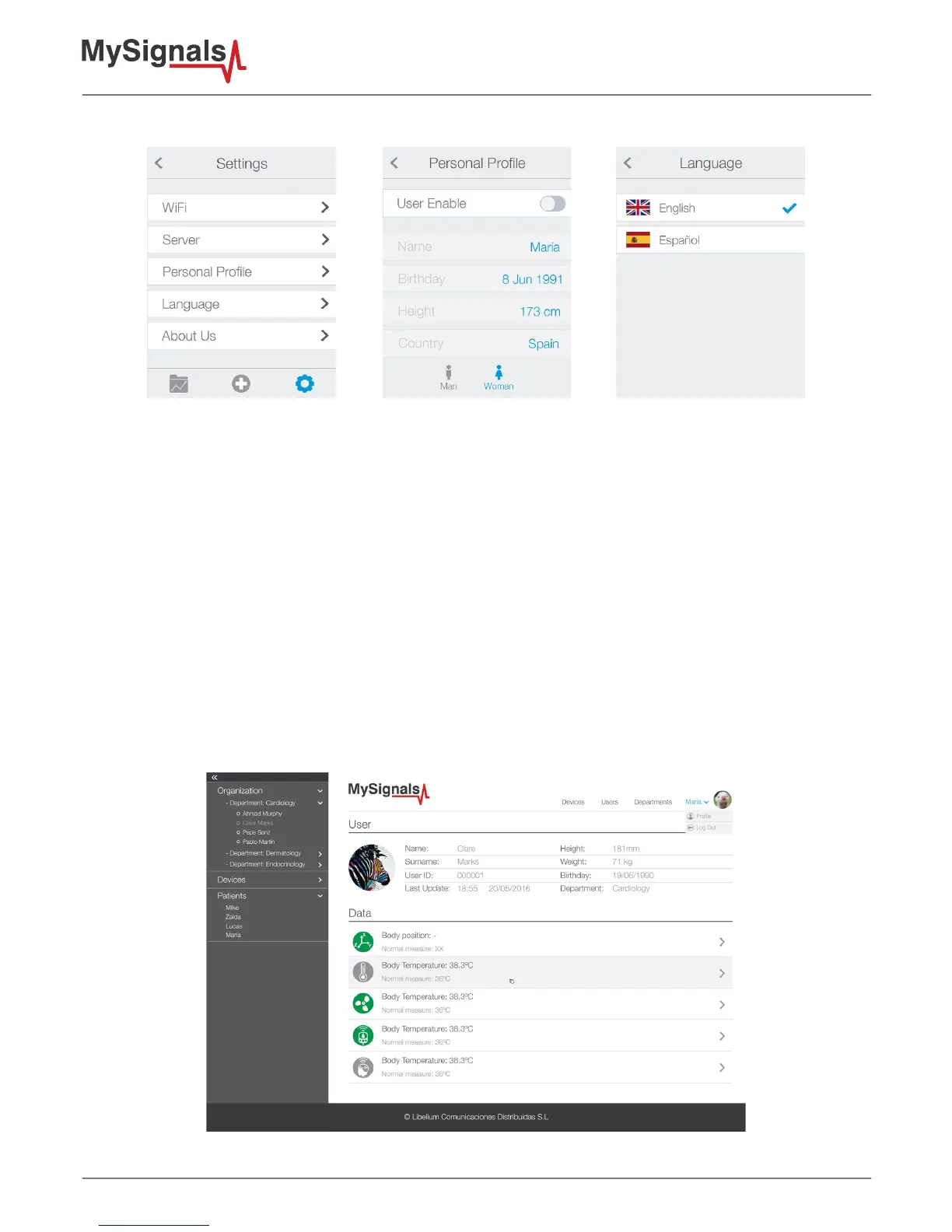 When the user start the MySignals application for the rst time and setup assistant prompts the user will be able to create a