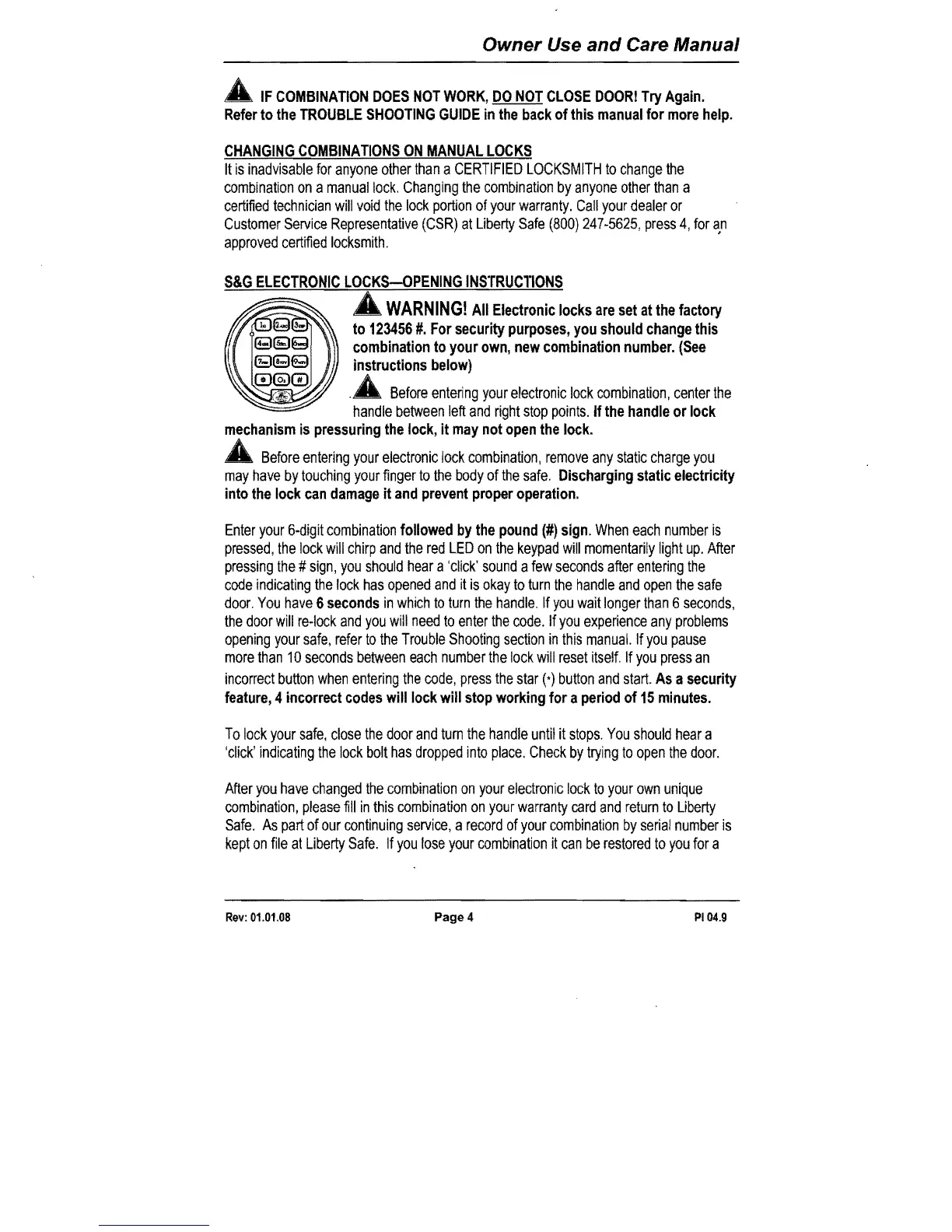 Liberty Safe - S&G Electronic Locks Opening Instructions